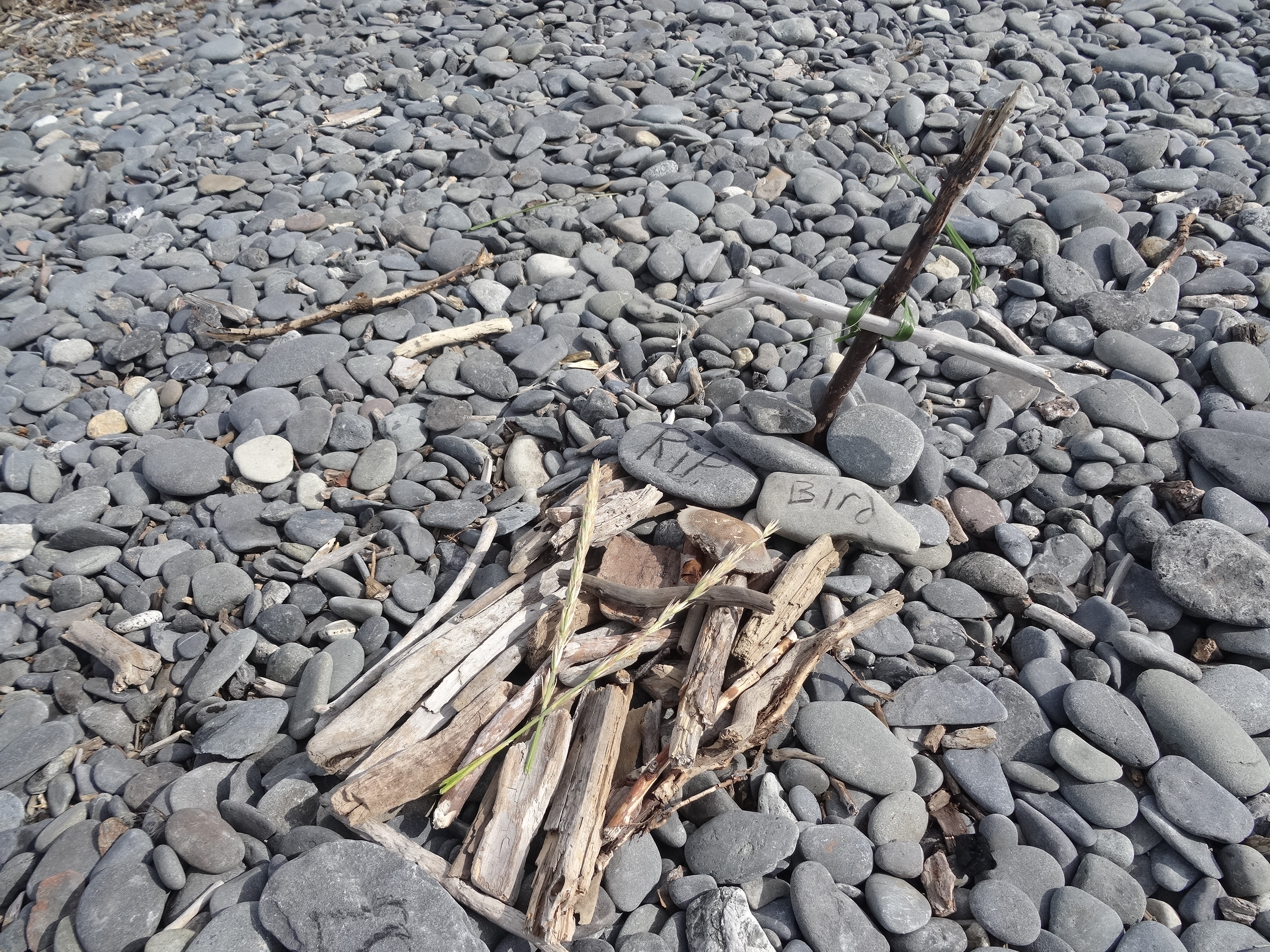 見つけた鳥の死骸の墓作り。